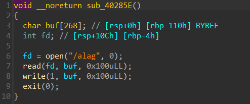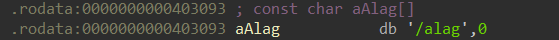 方法就是把 open("/flag", 0) 中的flag字符串修改为其他的字符串
